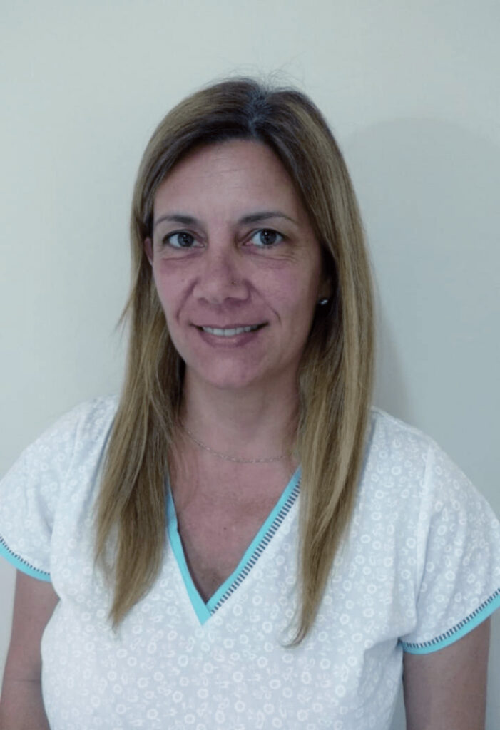 Egresada de la Facultad de odontología de la Universidad Nacional de Rosario y Especialista en Diagnóstico por Imágenes Buco Maxilo Facial, graduada en la Facultad de odontología de la Universidad de Buenos Aires.